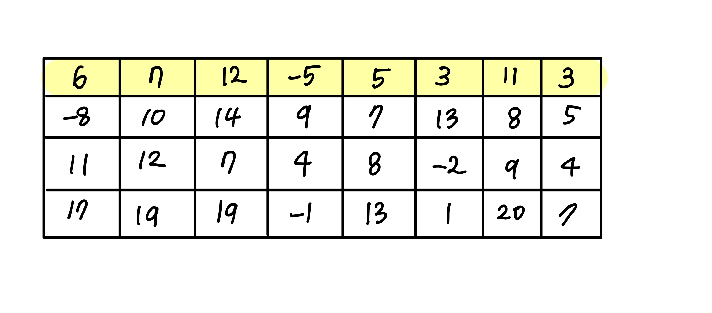 3×N 테이블의 각 칸에 양 또는 음의 정수가 기록되어 있다.